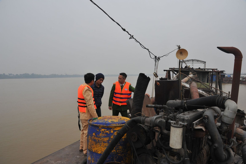 Cảnh sát đường thủy phối hợp với Công an quận, huyện kiểm tra, xử lý nghiêm các đối tượng khai thác cát trái phép