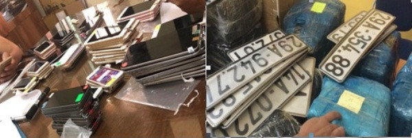 Số thiết bị điện tử và BKS được tìm thấy trên xe ô tô