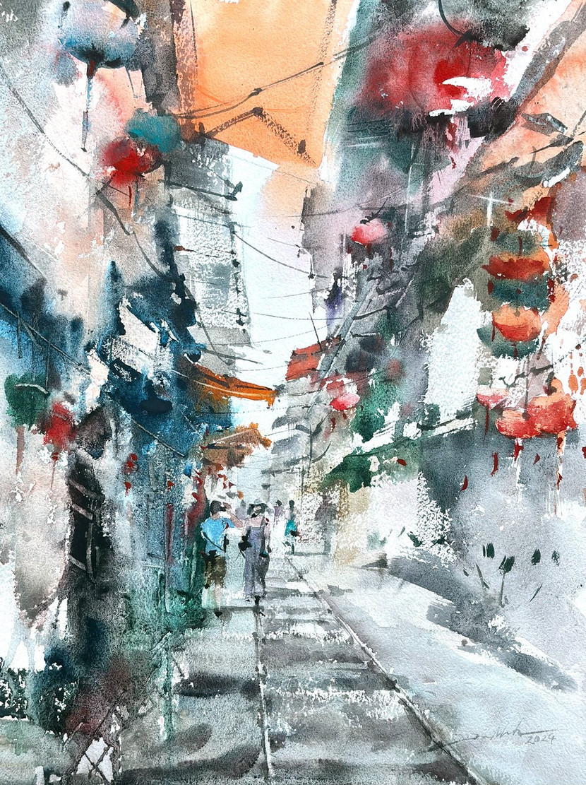 30 bức tranh màu nước được trưng bày tại triển lãm khắc họa vẻ đẹp phong cảnh, đời sống và con người Việt Nam qua lăng kính cá nhân đầy cảm xúc của nghệ sĩ Minh Đàm.