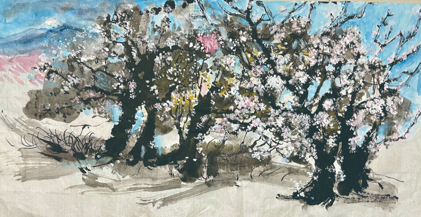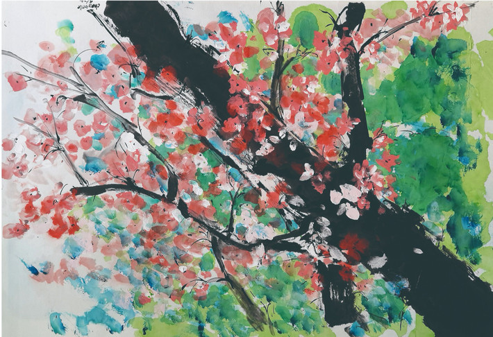 | Các tác phẩm "Hoa Anh đào trên núi Phú Sĩ" của tác giả Manling Cheung được trưng bày tại triển lãm |