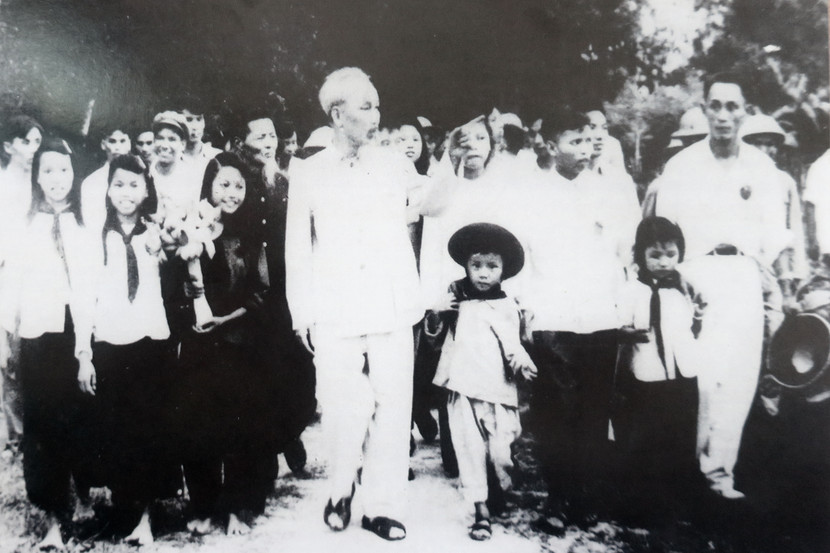 Bác Hồ cùng các cháu thiếu nhi Làng Sen, Kim Liên, Nam Đàn, Nghệ An