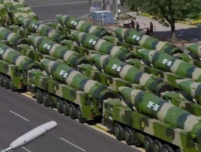 ANTD.VN - Lực lượng tên lửa của quân đội Trung Quốc mới đây vừa biên chế cùng lúc 22 tên lửa đạn đạo tầm trung DF-26, loại vũ khí được mệnh danh là “kẻ hủy diệt đảo Guam”.