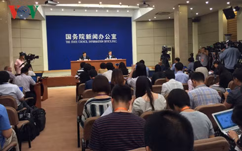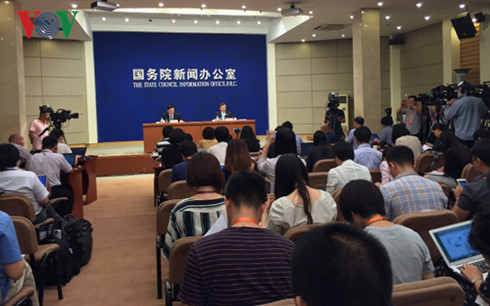 Quang cảnh buổi họp báo công bố Sách Trắng của Trung Quốc sáng 13-7