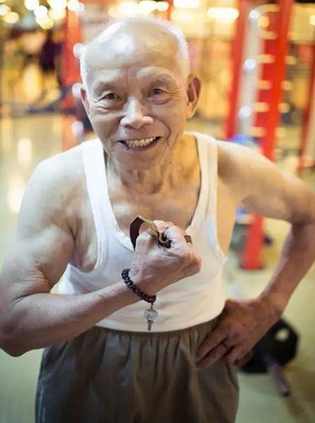 Dù đã 93 tuổi nhưng thân hình ông Thẩm vẫn còn khá cơ bắp