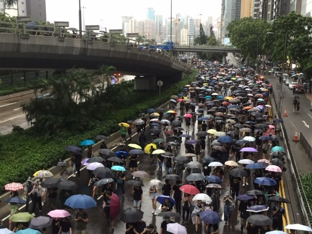 Ngày 18-8, hàng trăm nghìn người Hồng Kông đã tuần hành xuyên trung tâm bất chấp mưa lớn