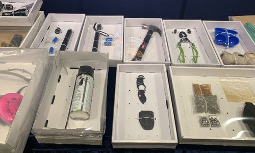 Vũ khí bị cảnh sát Hồng Kông thu giữ từ những người biểu tình có cả dao găm và búa