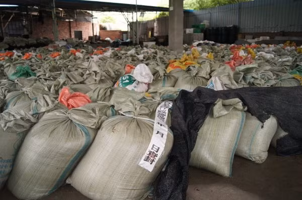 Những bao nấm kim châm đã bốc mùi hôi thối được nhồi vào bao tải dùng để đựng thức ăn chăn nuôi và bốc mùi chua thiu. Cơ sở sản xuất này lập tức bị buộc phải đóng cửa.
