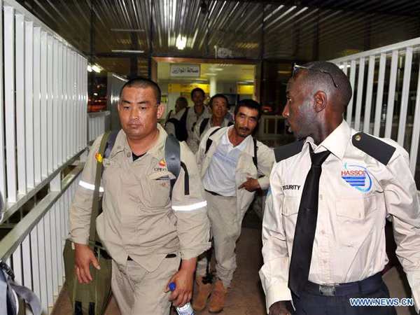 Công dân Trung Quốc rời khỏi sân bay quốc tế Khartoum
