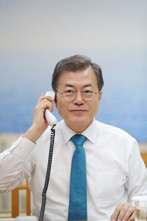 Tổng thống Hàn Quốc Moon Jae-in trong cuộc điện đàm