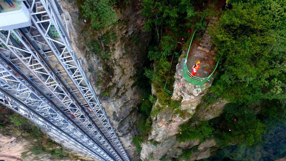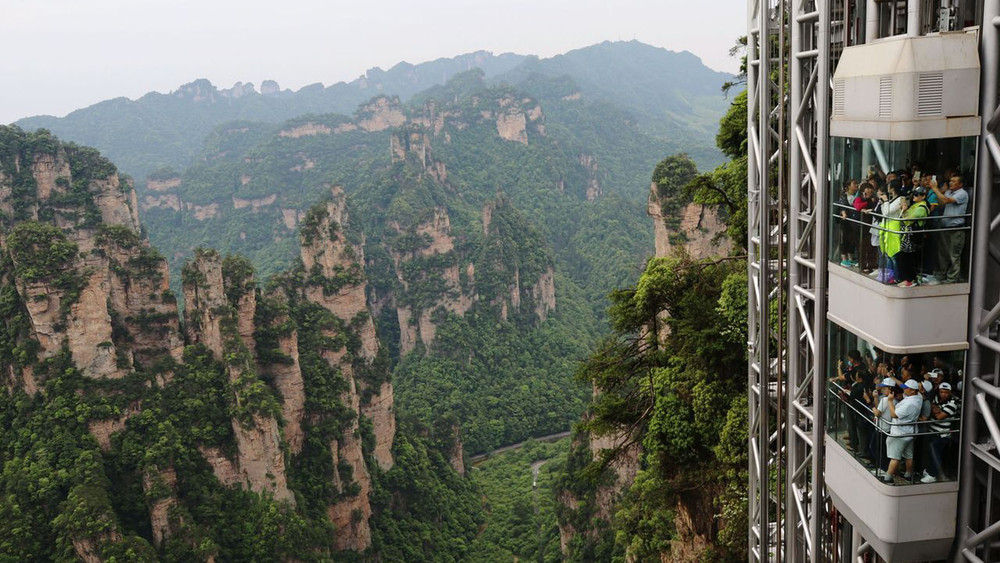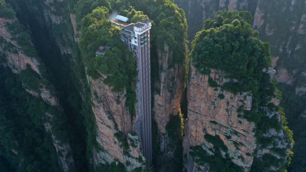 ANTD.VN - Nhằm bảo vệ hệ sinh thái cũng như giúp du khách chiêm ngưỡng cảnh quan thiên nhiên tuyệt đẹp, Trung Quốc đã xây một thang máy chỉ bằng tay, bởi không thể vận chuyển các máy móc hạng nặng lên trên do địa hình hiểm trở.