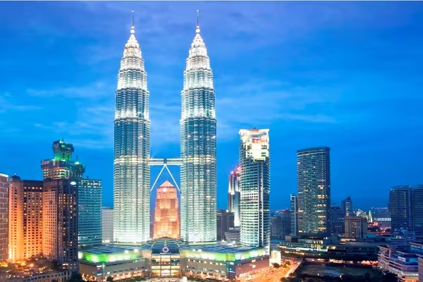 Tòa tháp đôi Petronas nổi tiếng ở Kuala Lumpur (Malaysia)