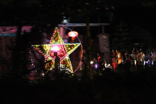 Phổ biến nhất vẫn là đèn ông sao, đây là loại được làm từ những thanh tre vát mỏng, cột lại thành hình ông sao và được dán giấy màu. Có hai loại giấy được chọn là giấy bóng kiếng và giấy bình thường. Ưu điểm của giấy bóng kiếng thì đèn sẽ đẹp và khi đốt nến bên trong sẽ thấy rõ, nhưng nhược điểm là dễ bị biến dạng khi chả may để quá gần ngọn lửa, và khó trong khâu dán vào thanh tre. Loại giấy màu bình thường thì dễ dán, đôi khi chỉ là hạt cơm miết ra là có thể dán vào được, nhưng nhược điểm là không sáng khi thắp vào trời tối.