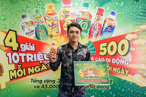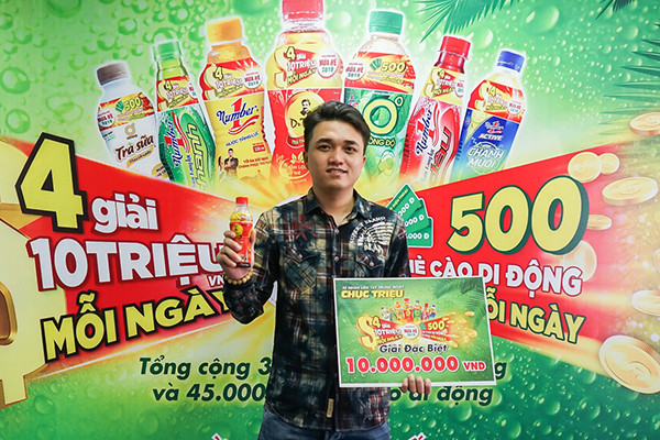 Nam thanh niên có tên Triệu Đông Minh ngụ ở Quận 8, TP.HCM là một trong những khách hàng may mắn vừa được nhận thưởng từ chương trình khuyến mãi hè của Tân Hiệp Phát.