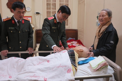Ủy viên Ban Thường vụ Thành ủy, Bí thư Đảng ủy, Giám đốc CATP Hà Nội, Trung tướng Đoàn Duy Khương ân cần hỏi thăm sức khỏe đồng chí Phạm Tâm Long.