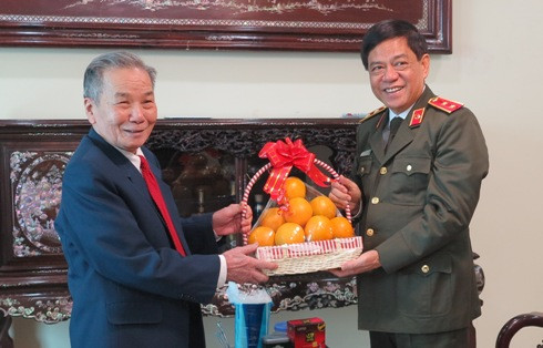 Đến chúc Tết gia đình đồng chí Phạm Tâm Long (nguyên Uỷ viên Trung ương Đảng, Thứ trưởng Bộ Công an, nguyên Giám đốc CATP Hà Nội), Trung tướng Đoàn Duy Khương gửi lời chúc mừng tốt đẹp nhất đến đồng chí Phạm Tâm Long cùng toàn thể gia đình năm mới an khang, thịnh vượng.