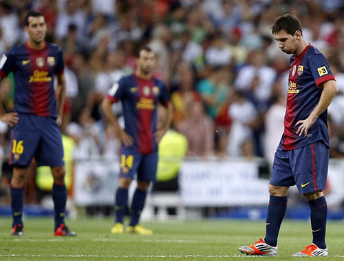 Nửa cuối hiệp một Barca thi đấu có phần khởi sắc hơn dù phải đá với 10 người. Đoàn quân của HLV Tito Vilanova cầm nhiều bóng hơn, nỗ lực đẩy cao đội hình tìm bàn gỡ. Tuy nhiên, Messi và các đồng đội không thể dùng "món tủ" tiqui-taca để xuyên thủng bức tường phòng ngự của Real.