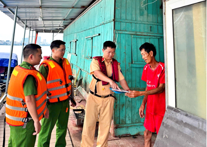 Cùng với hoạt động kiểm tra, đoàn công tác đã tuyên truyền, phát tờ rơi hướng dẫn các biện pháp phòng chống bão, vận động người dân và các đơn vị kinh doanh thực hiện nghiêm quy định về an toàn giao thông đường thủy.