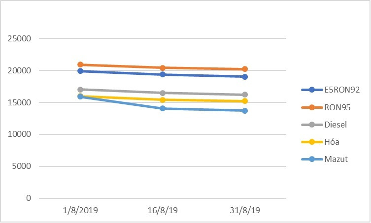 Diễn biến giá xăng dầu trong tháng 8-2019