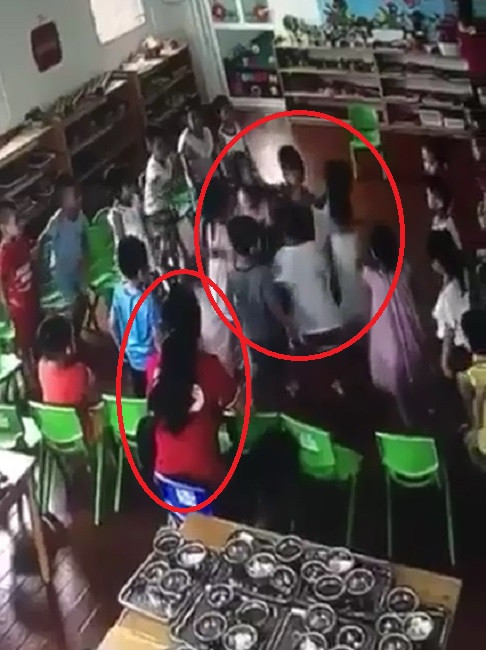 Cô giáo ngồi chứng kiến cảnh các trẻ trong lớp quây lại đánh bạn hội đồng