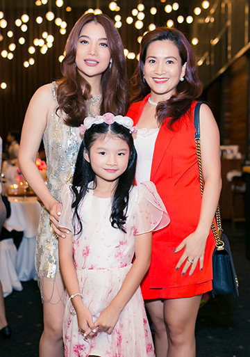 Ngoài đón tiếp người thân, bạn bè đến dự tiệc, bữa tiệc sinh nhật mừng tuổi mới của bé Bảo Tiên còn có sự xuất hiện của nhiều nghệ sĩ trong làng giải trí như: Hoa hậu Đàm Lưu Ly, diễn viên Trịnh Kim Chi, người mẫu Trang Trần, ca sĩ Đoan Trang, Vy Oanh...