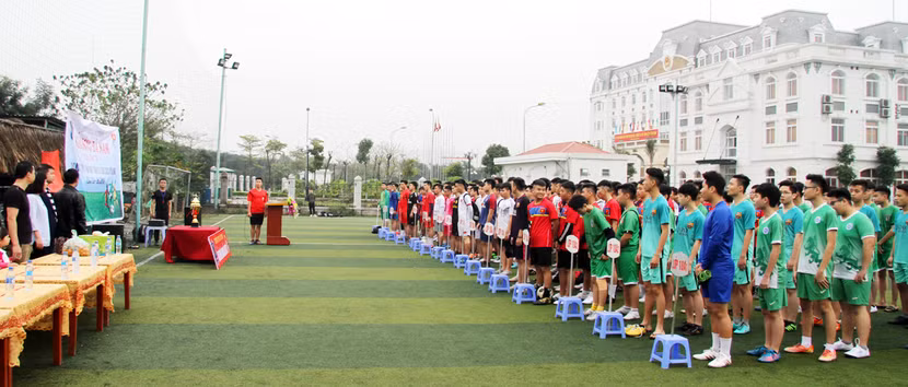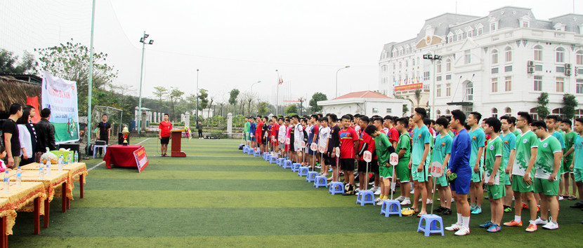 Hơn 200 cầu thủ đến từ 19 đội bóng của trường THPT Lê Văn Thiêm hứng khởi tham gia giải đấu nội bộ do trường tổ chức khai mạc sáng 17-3