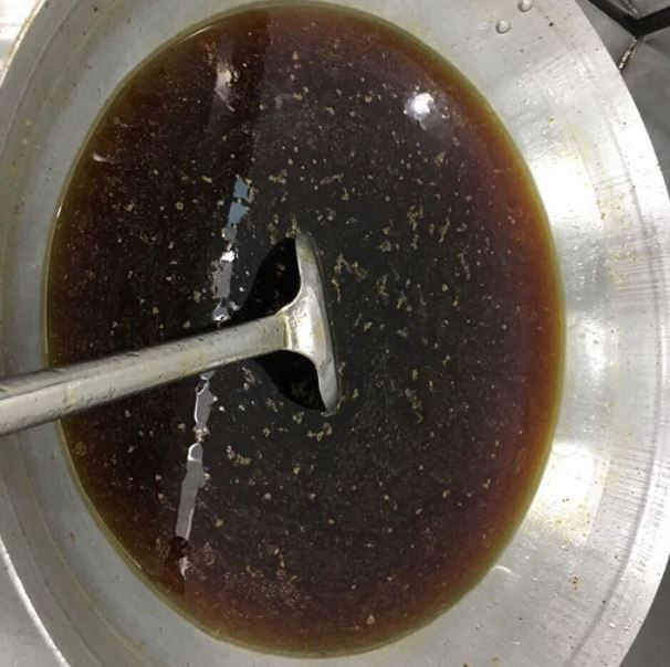 Đại diện ban phụ huynh cũng chụp ảnh một chảo dầu có màu đen, được cho là bếp dùng để nấu ăn cho học sinh, và số dầu này được dùng đi dùng lại nhiều lần, có nguy cơ ảnh hưởng đến sức khỏe của học sinh.