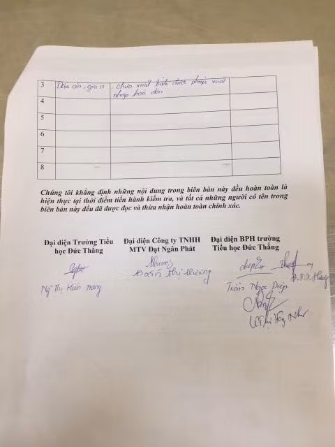 “Đại diện ban phụ huynh và quản lý bếp đã lập biên bản, ghi rõ bếp chưa xuất trình được phiếu mua hàng, hóa đơn”- chị N.H cho biết.