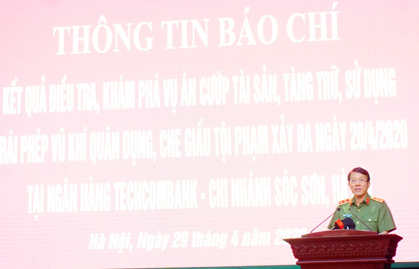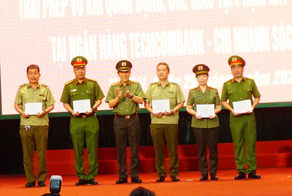 Nhằm động viên các lực lượng tham gia điều tra khám phá vụ án "Cướp tài sản, tàng trữ, sử dụng trái phép vũ khí quân dụng, che giấu tội phạm", xảy ra ngày 20-4 tại ngân hàng Techcombank – Chi nhánh Sóc Sơn, Hà Nội, chiều nay (29-4), đồng chí Nguyễn Đức Chung - Ủy viên trung ương Đảng, Phó Bí thư Thành ủy, Chủ tịch UBND TP. Hà Nội và đồng chí Trung tướng Lương Tam Quang, Thứ trưởng Bộ Công an đã trao thưởng, biểu dương các đơn vị lập chiến công xuất sắc.