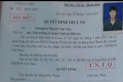 Quyết định truy nã đối tượng Đặng Huy Thanh