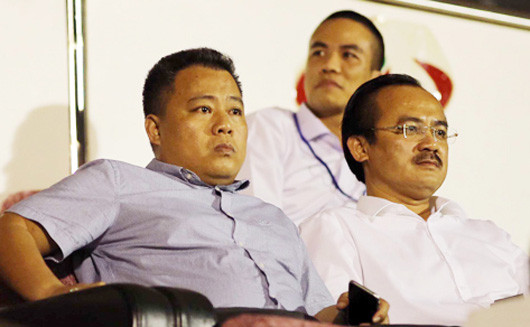 Trưởng giải Nguyễn Minh Ngọc (trái) và Chủ tịch VPF Võ Quốc Thắng trên sân Thống Nhất chiều 19-2