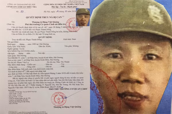 Ngày 16-10-2019, Cơ quan CSĐT Công an Thành phố đã ra Quyết định truy nã bị can đối với Đồng.