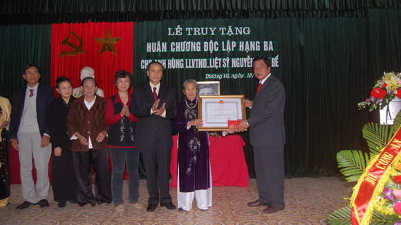 trao Huân chương Độc lập hạng Ba cho thân nhân Liệt sĩ Nguyễn Đình Bể