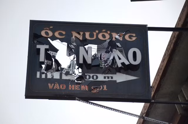 Anh Ngọc cho biết thêm, một biển hiệu đầu hẻm cũng bị rách bươm nghi là có người ném vật cứng vào. Vụ việc đã được camera an ninh của quán ghi lại toàn bộ khá chi tiết.
