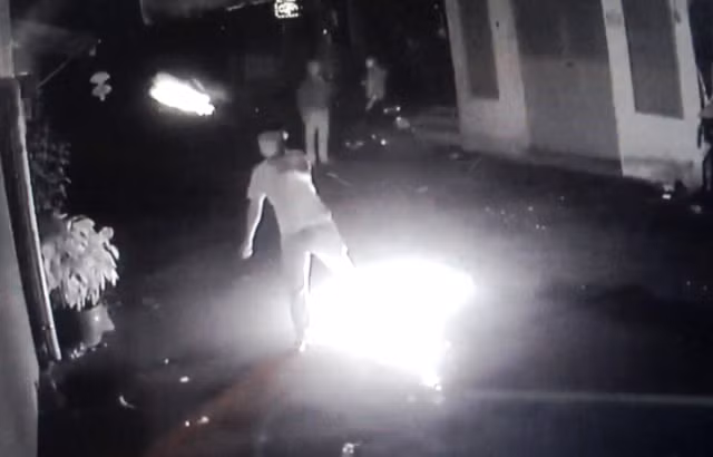 Nhóm thanh niên ném bom xăng vào quán. Ảnh: Cắt từ clip