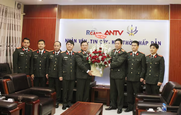 Thiếu tướng Đào Thanh Hải, Phó Bí thư Đảng ủy, Phó Giám đốc CATP Hà Nội tặng hoa chúc mừng Kênh truyền hình ANTV nhân kỷ niệm 7 năm ngày phát sóng đầu tiên