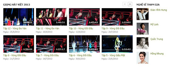 Vị trí thứ 2 là Giọng hát Việt, chương trình đang dần khởi sắc với Tập 11 – Vòng Đo ván: 696.796 lượt xem, tăng 57% so với tuần trước (442.026 lượt xem). Sự khởi sắc này đến từ màn đối đầu gây nhiều tranh cãi của Hoàng Tôn và Ý Nhi và tất nhiên phần biểu diễn của hai thí sinh này cũng nằm trong những màn biểu diễn hot nhất được cư dân mạng tìm xem lại trên Zing TV. Nguyễn Hoàng Tôn – Căn gác trống: 175.307 lượt xem và Nguyễn Thị Ý Nhi – Sẽ thôi mong chờ: 130.257 lượt xem.
