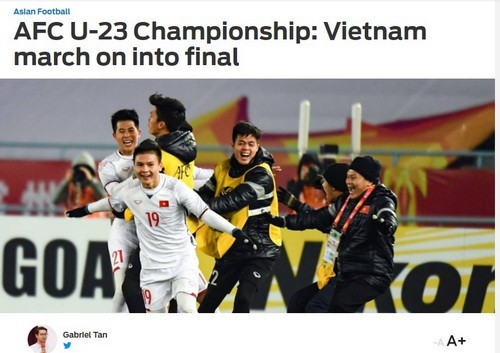 Tờ Goal phiên bản Australia giật tít "Cú đúp của Quang Hải đưa U23 Việt Nam vào chung kết", với những lời trích dẫn: "Đoàn quân bất khuất của HLV Park Hang Seo hai lần bị dẫn bàn nhưng vẫn bắt kịp Qatar, để rồi giành chiến thắng chung cuộc sau 120 phút nghẹt thở và loạt đá luân lưu định mệnh".