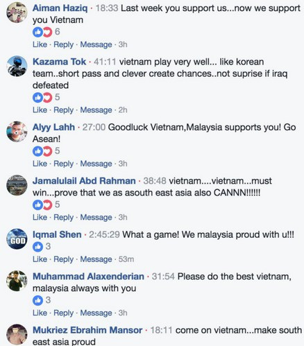Các bình luận của cộng đồng mạng Đông Nam Á ủng hộ U23 Việt Nam vào chung kết