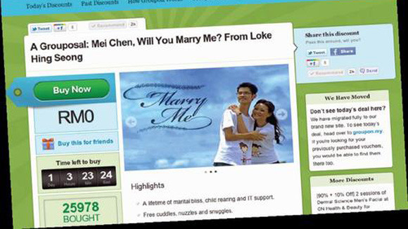 Trên trang Groupon, ngoài mục rao vặt còn có lời chúc phúc, cách nuôi dạy con và tâm sự nữ giới. Loke cho biết, nảy ra ý tưởng cầu hôn này khi biết bạn gái mình mỗi sáng cứ vào mạng là ghé qua trang Groupon xem món hàng nào được yêu thích nhất. Quản lý trang web Groupon cho biết, sau khi hiểu tình cảm chân thành của chàng kỹ sư Loke, họ quyết định giúp anh đăng lời cầu hôn miễn phí để “đối tác” phải bất ngờ và “tâm phục khẩu phục”. Hai người đã đăng ký kết hôn hôm qua 11-11-2011, một ngày đáng nhớ và may mắn mà rất nhiều người chọn làm ngày đám cưới.