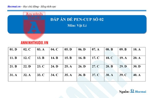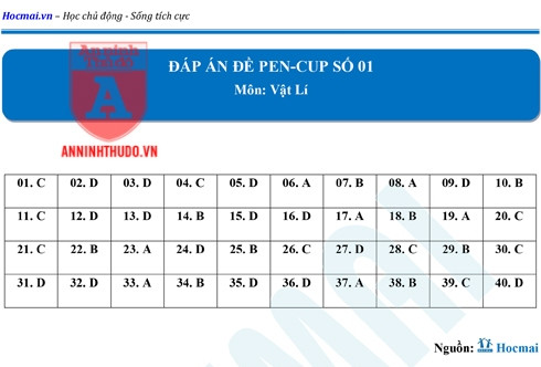 * ĐÁP ÁN MÔN VẬT LÍ: