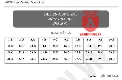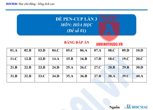 * ĐÁP ÁN MÔN HÓA HỌC:
