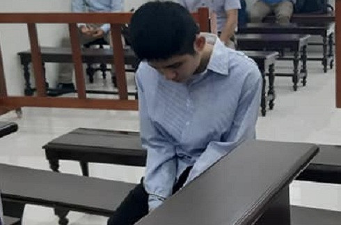 Tên cướp cắt cổ lái xe taxi - Nguyễn Cảnh An lúc chờ tòa nghị án.
