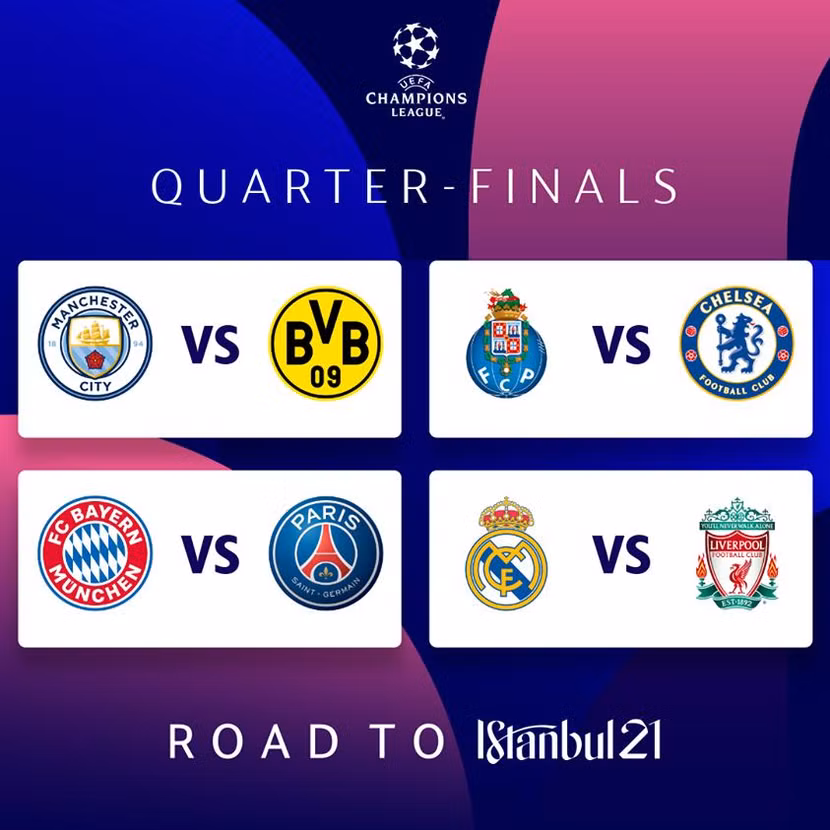 Có thể thấy cặp đấu đáng chú ý nhất tại vòng tứ kết Champions League 2020/21 chính là Bayern gặp PSG, tái hiện chung kết mùa giải năm ngoái, khi Hùm xám thắng 1-0 nhờ pha lập công của Kingsley Coman để vô địch Cúp C1/Champions League lần thứ 6.