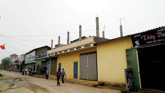 (Trong ảnh: Loạt ki-ốt được xây dựng trên đất công ở Tân Dân, Sóc Sơn)