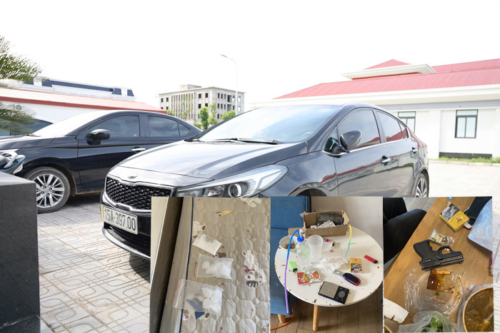 Khám xét trên xe ô tô hiệu Kia Cerato BKS: 15A - 39700 của Khải để dưới sảnh tòa nhà, lực lượng Công an thu giữ 1 gói nhỏ dạng tinh thể, 1 cân điện tử và một số vật chứng khác.