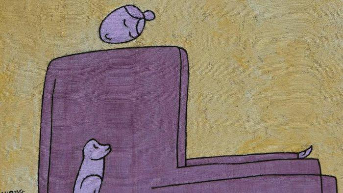 | Tranh của họa sĩ Lê Thiết Cương bày tại triển lãm "Bến lạ" |