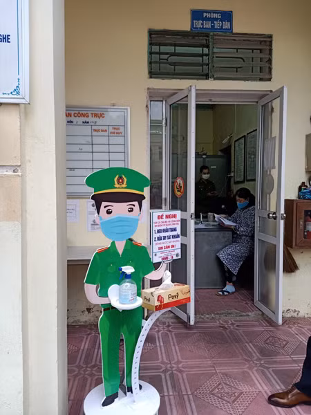 Tại nơi tiếp dân các Công an xã, thị trấn đều trang bị dụng cụ y tế, khử khuẩn trước khi làm việc