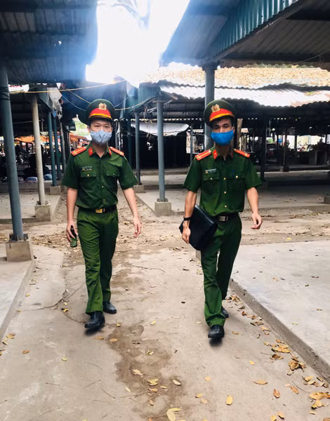 Công an thị trấn Chi Đông tuần tra, kiểm soát tại khu vực chợ thị trấn