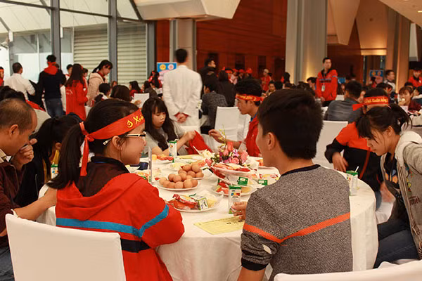 Những người đến với lễ hội đang xếp hàng để chờ tới lượt mình vào tham gia hiến máu.