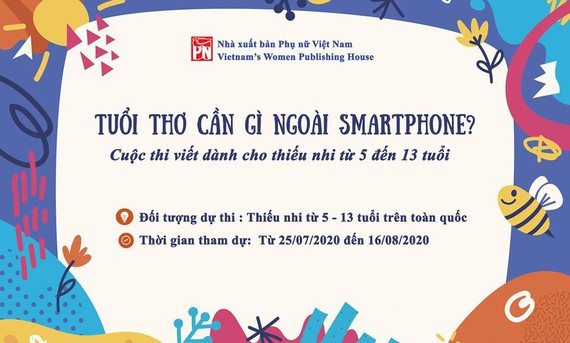 Cuộc thi viết dành cho thiếu nhi từ 5 đến 13 tuổi với chủ đề: Tưởng tượng về mùa hè không smartphone mang đến cho trẻ cơ hội tự do sáng tạo, phát triển trí tưởng tượng về một mùa hè trong mơ. Mỗi bạn nhỏ có thể viết/vẽ (không giới hạn số chữ) về một mùa hè lý tưởng của mình.